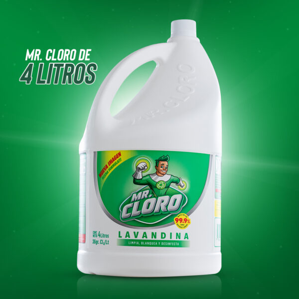 Elige Mr. Cloro y experimenta la diferencia en la limpieza y desinfección de tu hogar. Nuestra lavandina está diseñada para hacer que la higiene sea sencilla y efectiva. ¡Mantén tu entorno limpio y seguro con Mr. Cloro!"